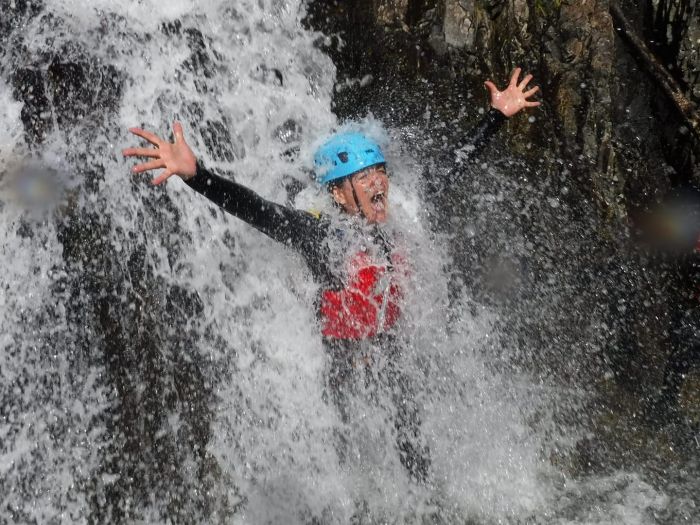 At one point there’s a six-metre drop. Our guide tells us he’s done it since he was a kid, but that doesn’t soothe everyone. Four peel off and take the longer walk around. The rest of us eye the edge, take a breath, and jump. For a split second you’re between fear and flight. Then the splash. Then the surface. And you’re laughing.