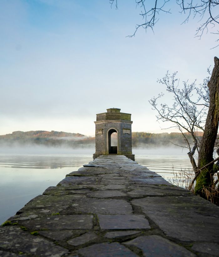 At the end of a stone causeway, the Temple of Naval Heroes—also known as Storrs Temple—stands as a tribute to four British admirals: Howe, Duncan, St. Vincent, and Nelson.Built in 1804 by Sir John Legard, the temple is an octagonal stone structure with four arched openings and commemorative tablets honoring these naval figures.The temple was designed as a gazebo or belvedere, providing a vantage point for guests to enjoy the lake’s beauty.Today, it remains a Grade II* listed building, reflecting the estate’s rich history and the owner’s admiration for naval achievements.