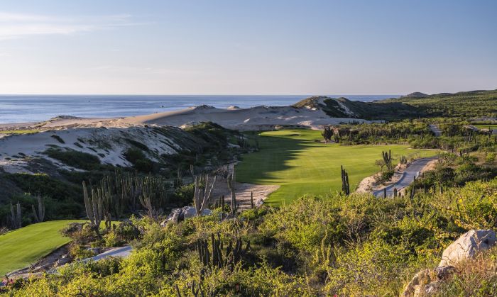 At its heart is , a Greg Norman-designed course ranked among the top in Mexico. It’s a Golf Digest Editors’ Choice course, ranked #12 in Mexico/Caribbean/Atlantic courses by Golf Week. Opened in 2020, it stretches 7,240 yards across rolling dunes and cactus forest. Five holes frame the sea directly. Whales breach in the distance—the inspiration for the logo. Wind shapes every swing.