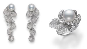 Image Credit: Mikimoto Mikimoto’s high jewelry is typically wildly ornate (think lattice work bibs of pearls and multistrand pearl necklaces with giant flowers set in diamonds as accents) charged with high-wattage femininity. But th is season there were a few pieces that stood out for skewing a little more modern than romantic. For those that love a pearl, but are looking for something a touch more wearable this pair of 18-karat white gold earings with a whie South Sea cultured pearls and diamonds set on cascading petals proved the Japanese jeweler has something for all kinds of well-heeled women. A matching ring completes the vibe.