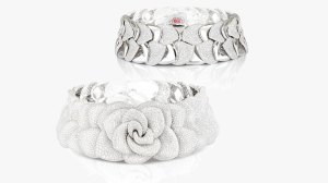 Image Credit: Pasquale Bruni Eugenia Bruni, Pasquale Bruni’s creative director, took inspiration from a rose that grew in her father’s childhood home in Calabria to realize this wildly intricate rose petal collar in 18-karat white gold set with 112.70 carats of diamonds. On the interior is a heart set with pink sapphires. The necklace can be worn with the rose petal facing the front or with the backside, with just the petals, worn facing forward. The Rose can also detach to be worn on a thick velvet collar, Marie Antoinette-style. And it is surely fitting for a modern-day queen.
